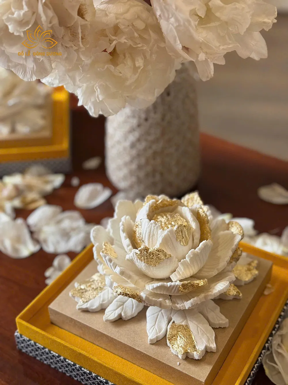 Oản Hoa Mẫu Đơn Dát Vàng – Lễ phẩm cát tường, chiêu sáng phúc lộc dâng Phật – Thánh – Gia tiên
