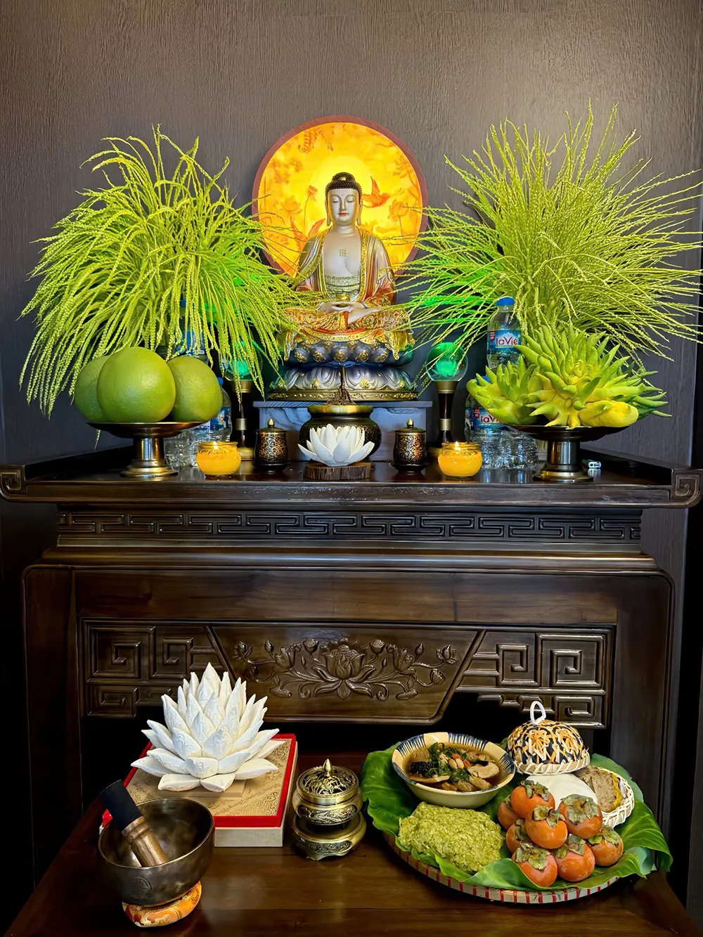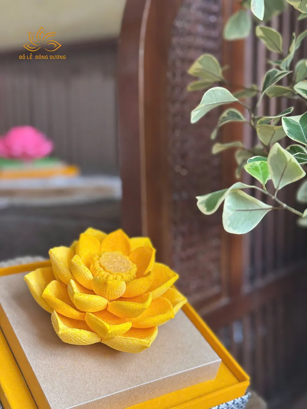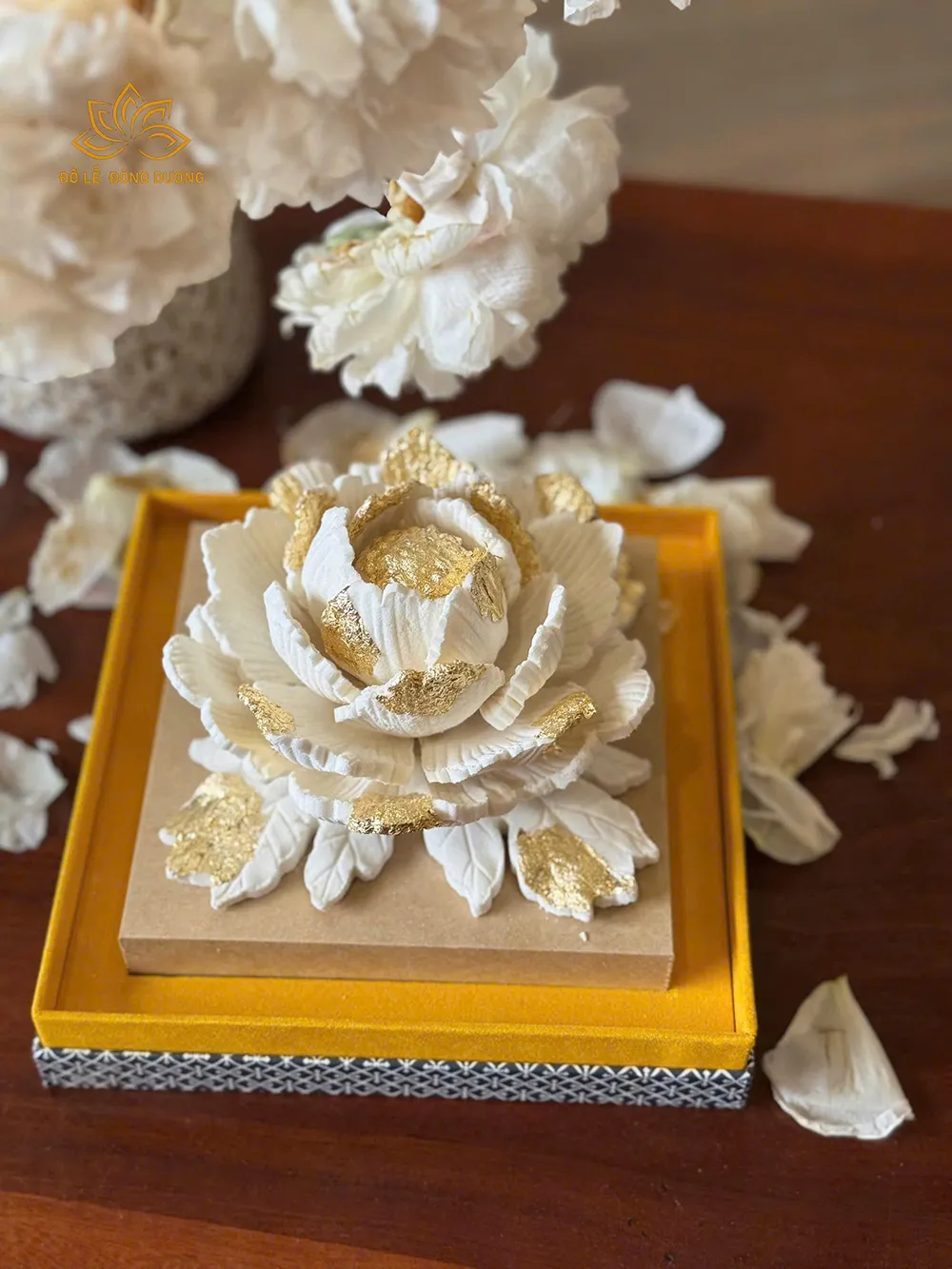 - Nhờ kỹ thuật dát vàng thủ công nhiều công đoạn, bông hoa giữ được độ sáng sang trọng – sắc nét – bền đẹp, tạo nên vẻ lộng lẫy nhưng trang nghiêm cho lễ phẩm.