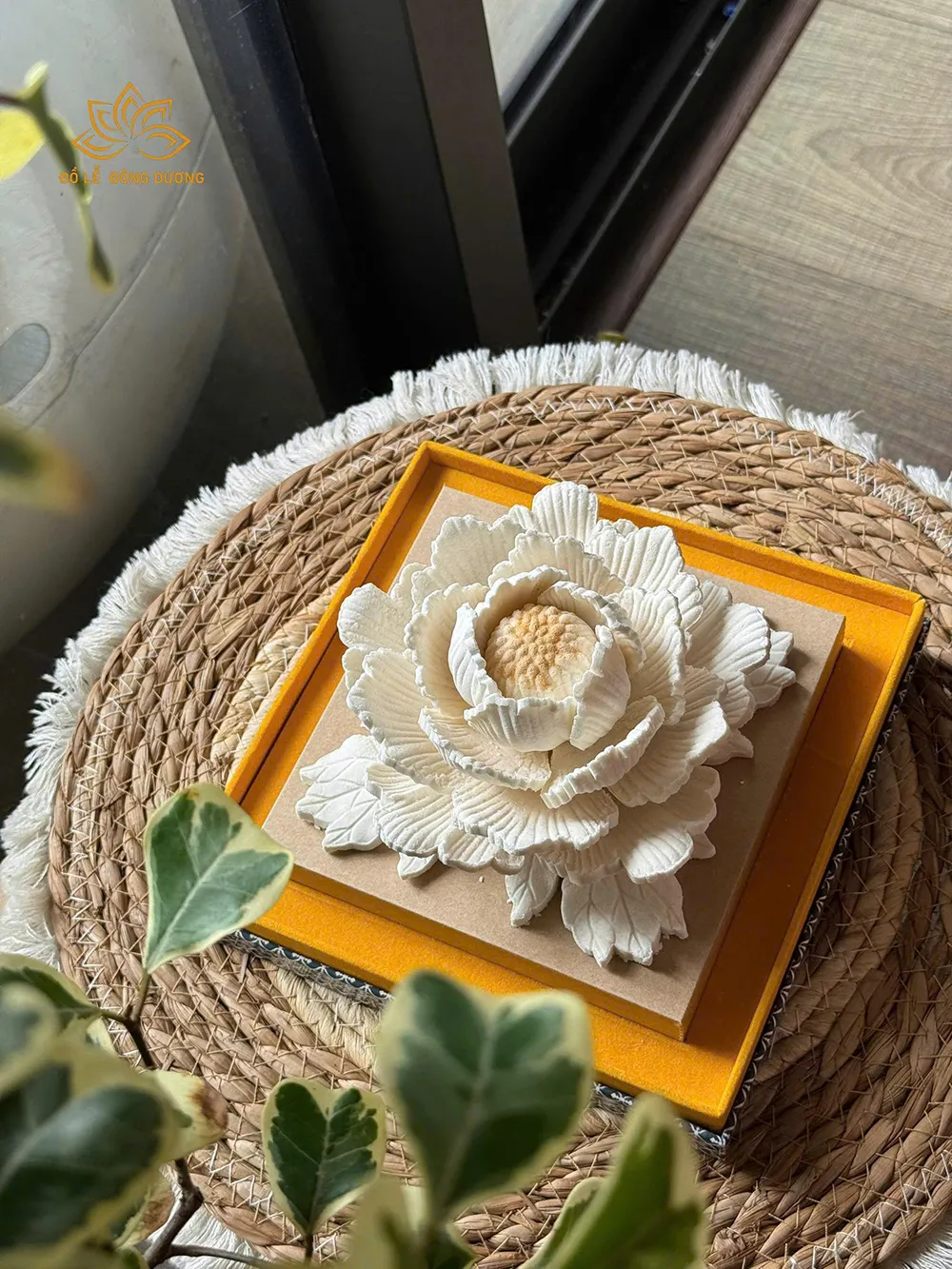 • Sản phẩm thủ công 100%, giữ dáng thanh nhã – sạch đẹp – bền chắc, kết hoa mẫu đơn trắng mềm mại, mang vẻ trang nghiêm mà an tĩnh.