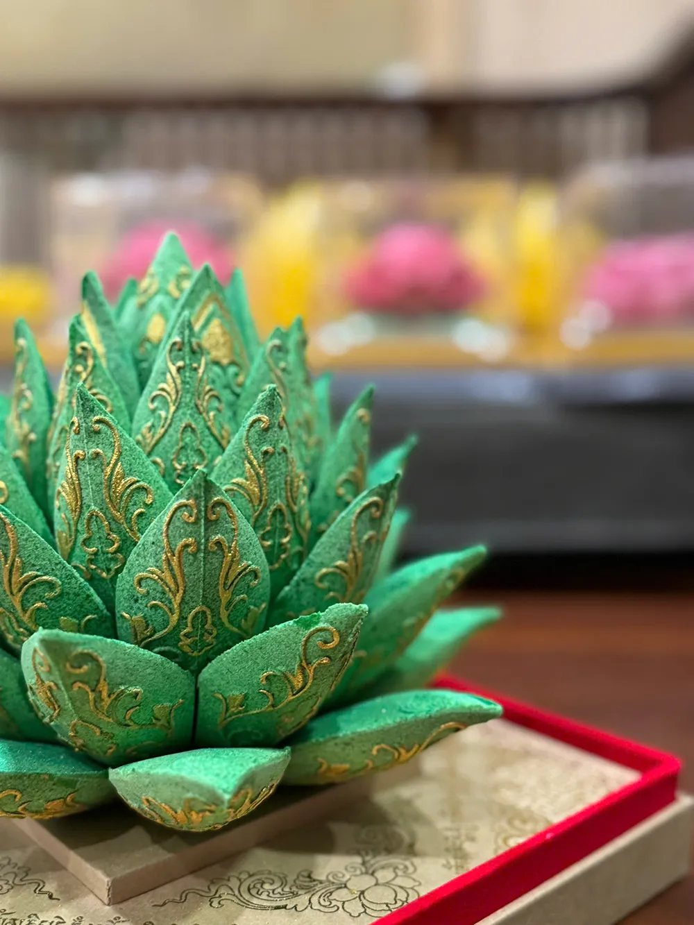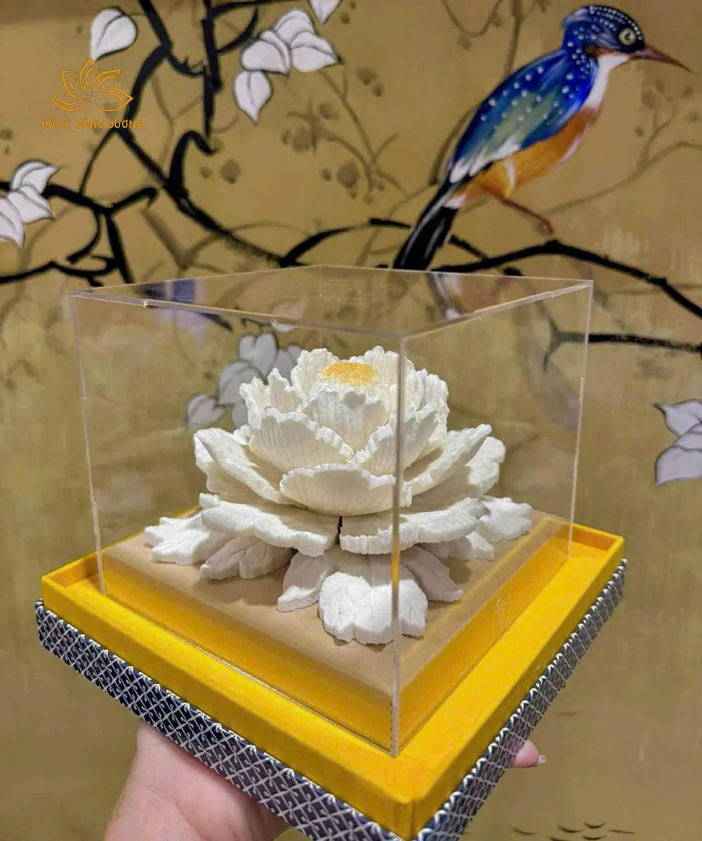 Oản hoa mẫu đơn trắng mang biểu tượng của sự thuần tịnh, an nhiên và trí sáng, là lễ phẩm trang trọng để dâng thờ Phật, kính Thánh – Mẫu và hiến lễ gia tiên trong các dịp lễ tạ, cầu an, cầu duyên hay những thời khắc cần thanh lọc tâm – nhà – vận.